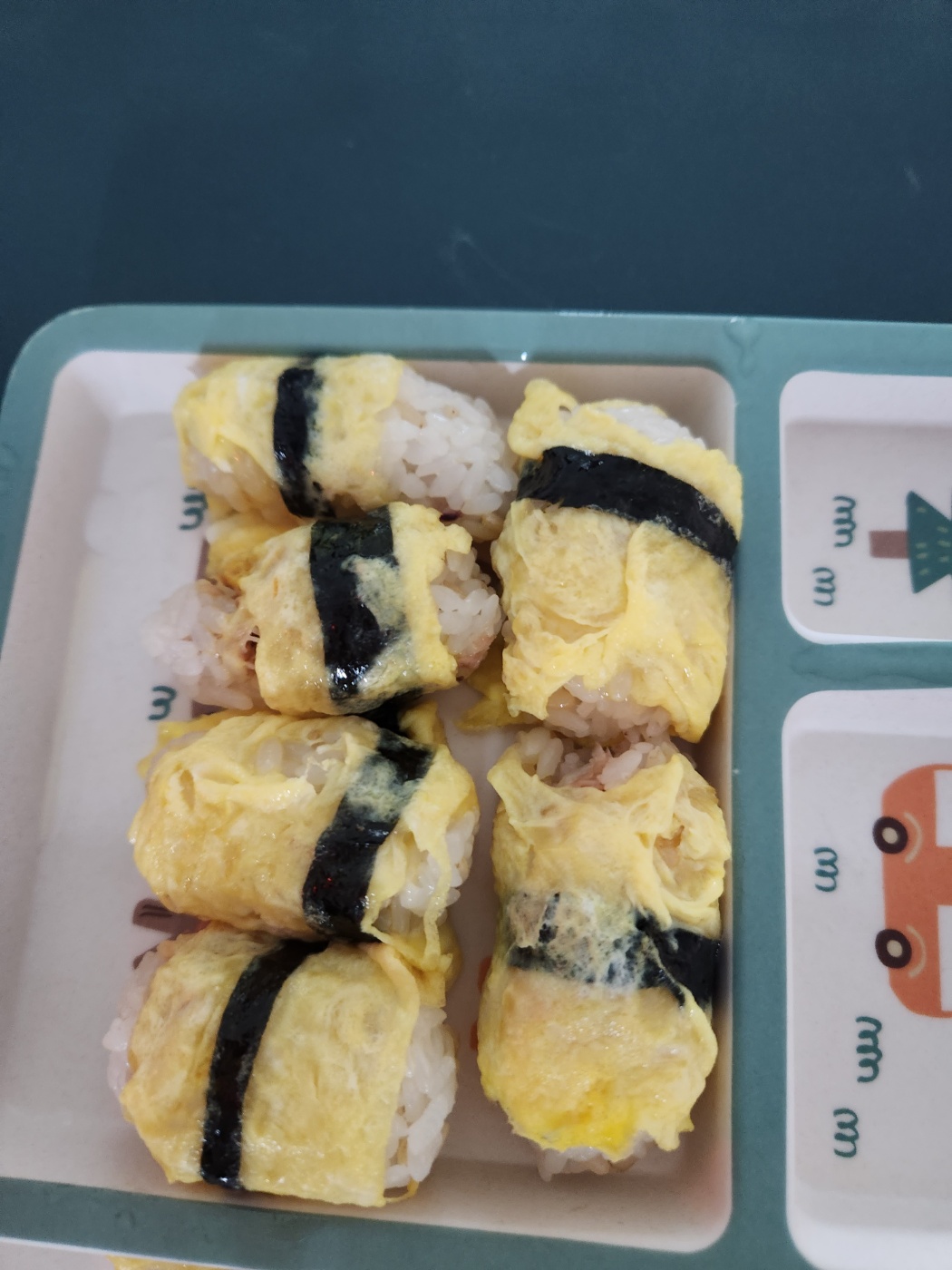 집에서 참치, 계란, 마요네즈, 밥, 김만 있으면 아이들을 위한 정말 간단한 계란 초밥을 만들 수 있습니다.