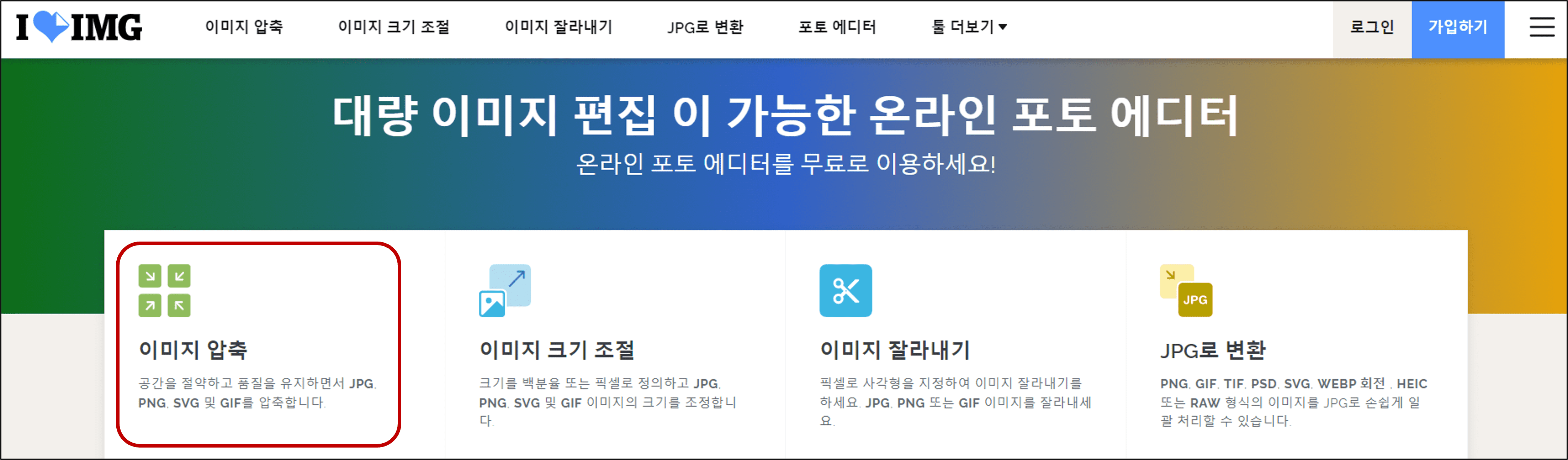* iLoveIMG 사이트는 회원가입 없이 이용하실 수 있습니다.
